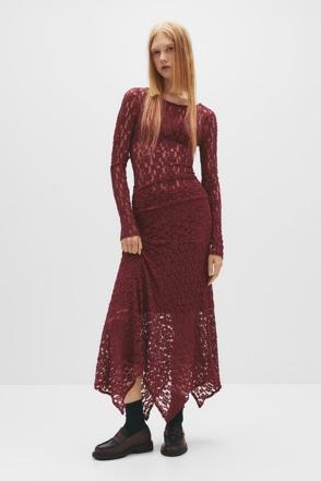 - Asymmetric lace midi skirt—here